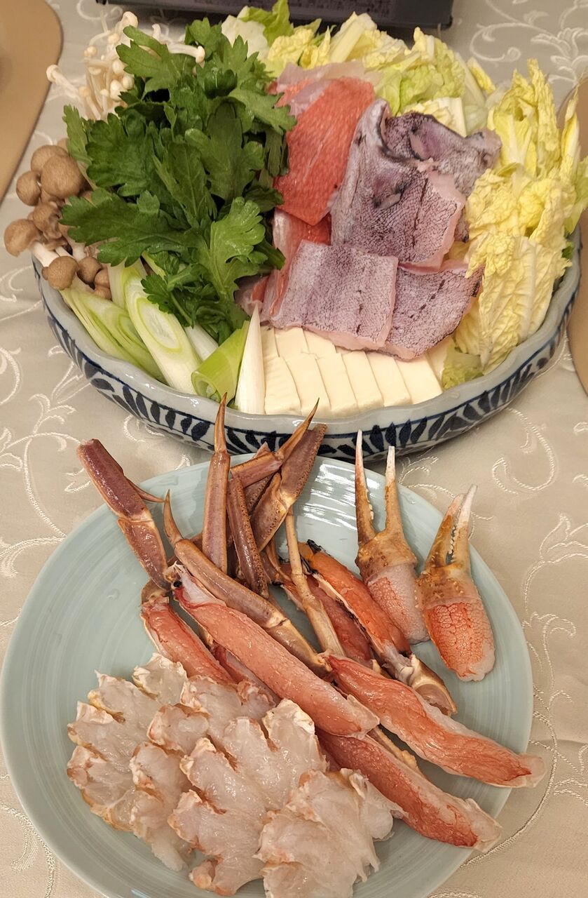 ふるさと納税の蟹、ハマコさんの釣り仲間から頂いた金目鯛、深海魚のどんこと言うお魚も入れて