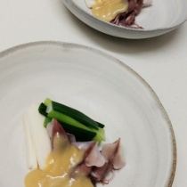 翌日はゴルフなので早く休みたい日の夕食蛍烏賊、独活、わけぎのぬた富山産のホタルイカが出ていたので即購入しましたが、まだ小さいです。アスパラ焼きだし醤油で頂きます。穴子と蕗の薹の天麩羅夫には牛肉焼きウスターソースと辛子でペアリングの白ワインはVENTOUX2018フラ ...