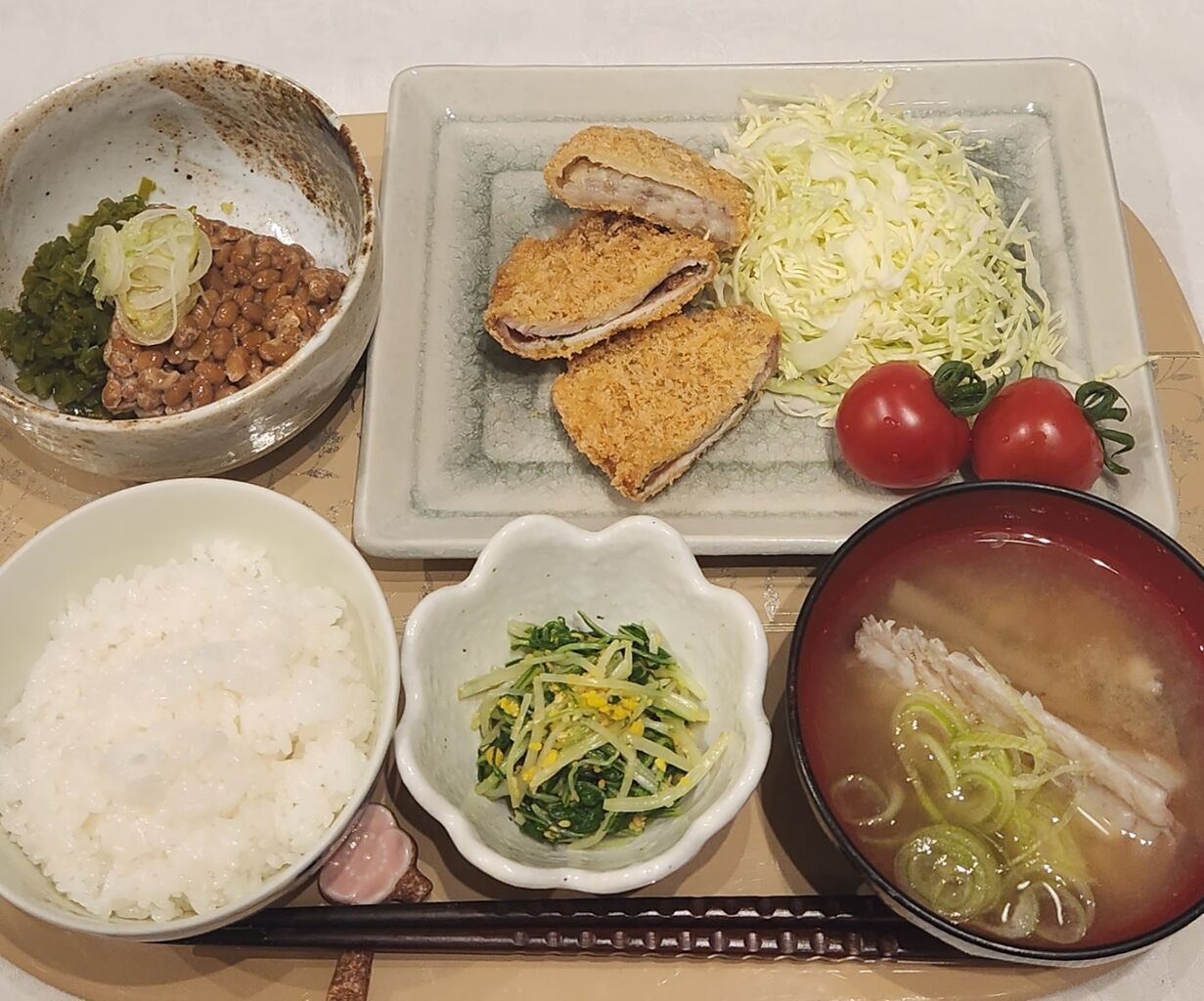 夫にはお肉屋さんで揚げて頂いたロースカツ