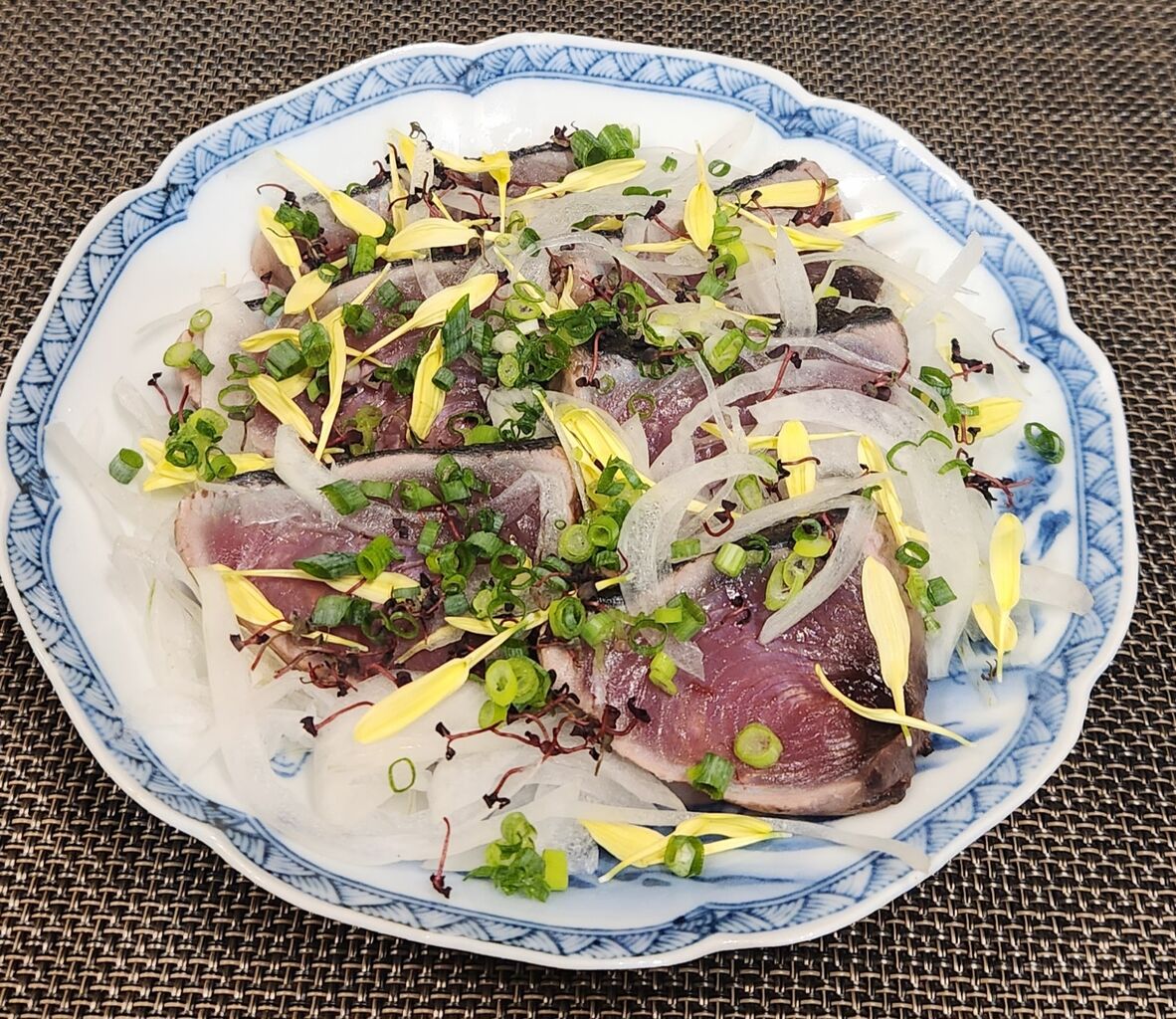 夕食は冷凍の鰹を解凍してあったのでタタキから