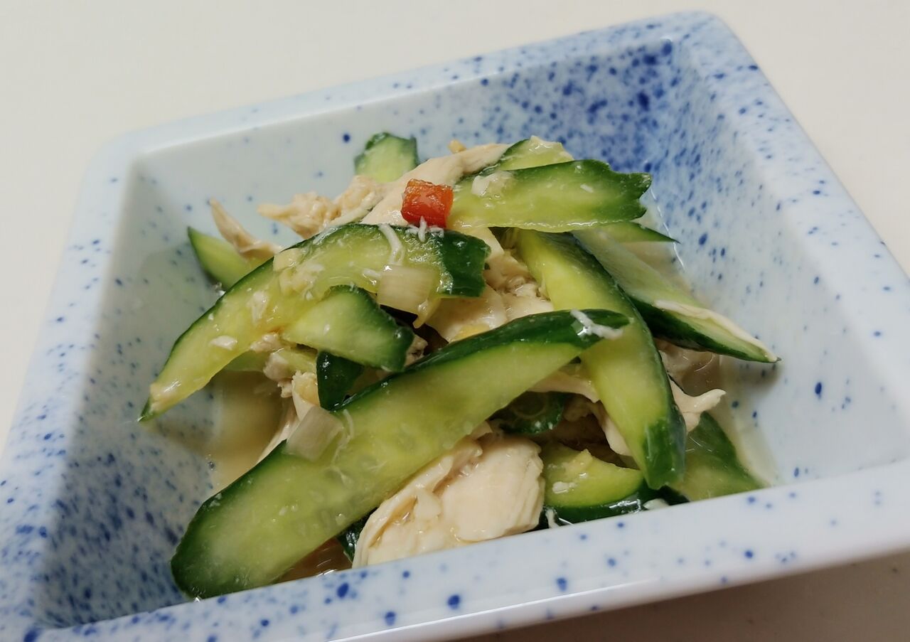 最近、ダイエット中の息子には鶏ささみと胡瓜、パプリカの和え物