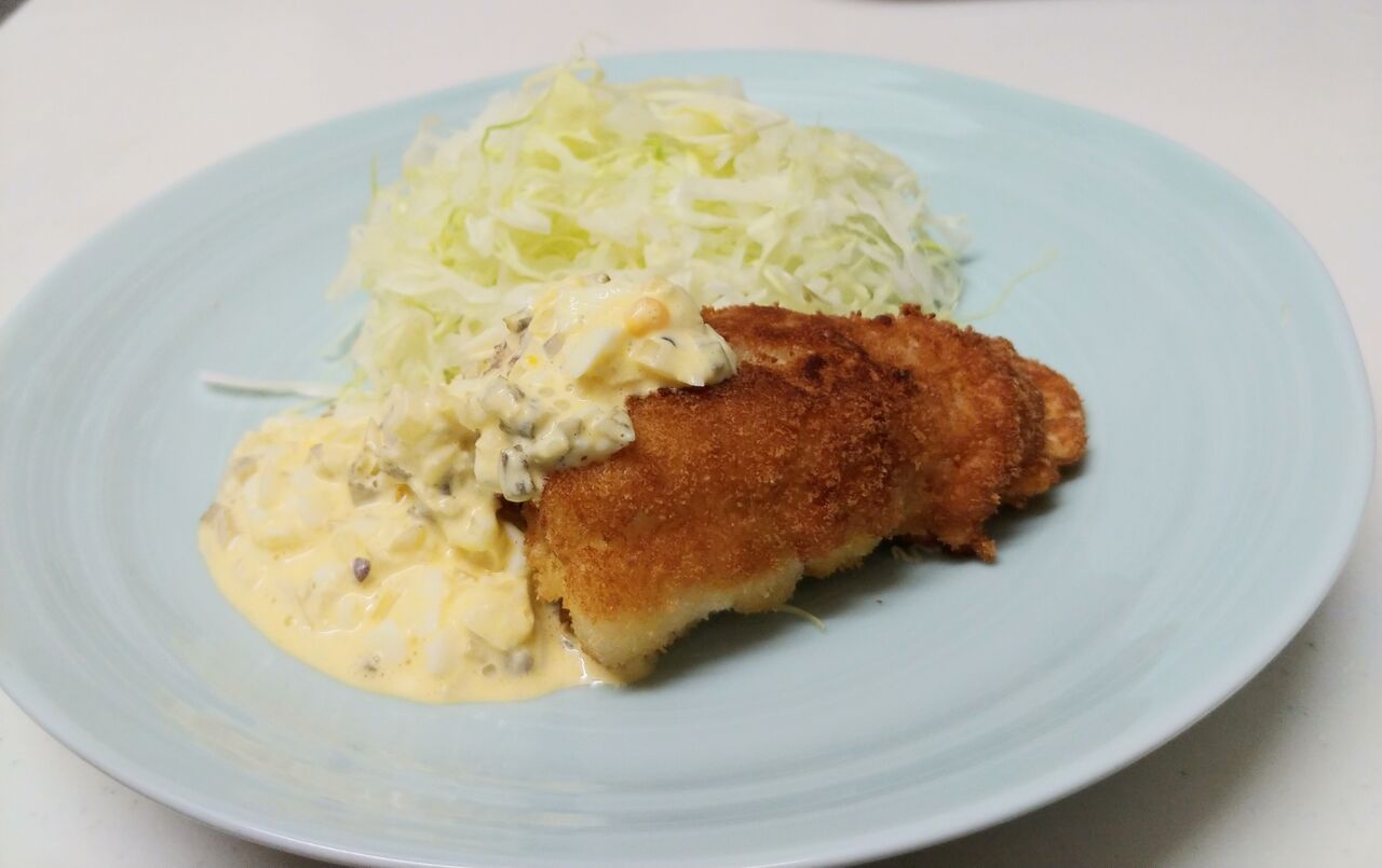 パン粉を細かく引き過ぎてしまいましたが、鯛の様な食感でタルタルソースを付けると幾つでもいけそうです。