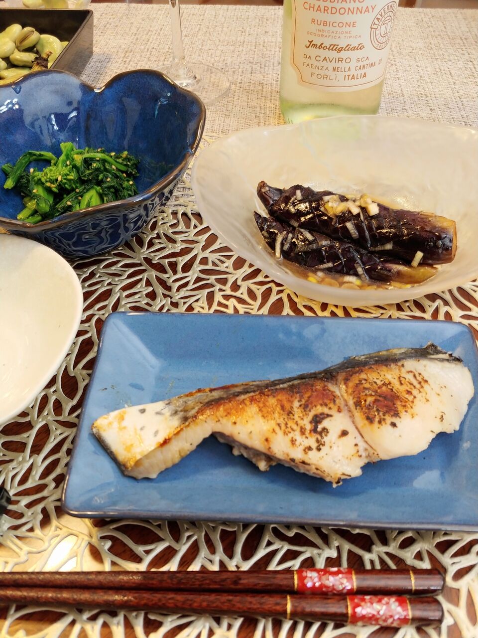 夕食は空豆のグリル焼きから