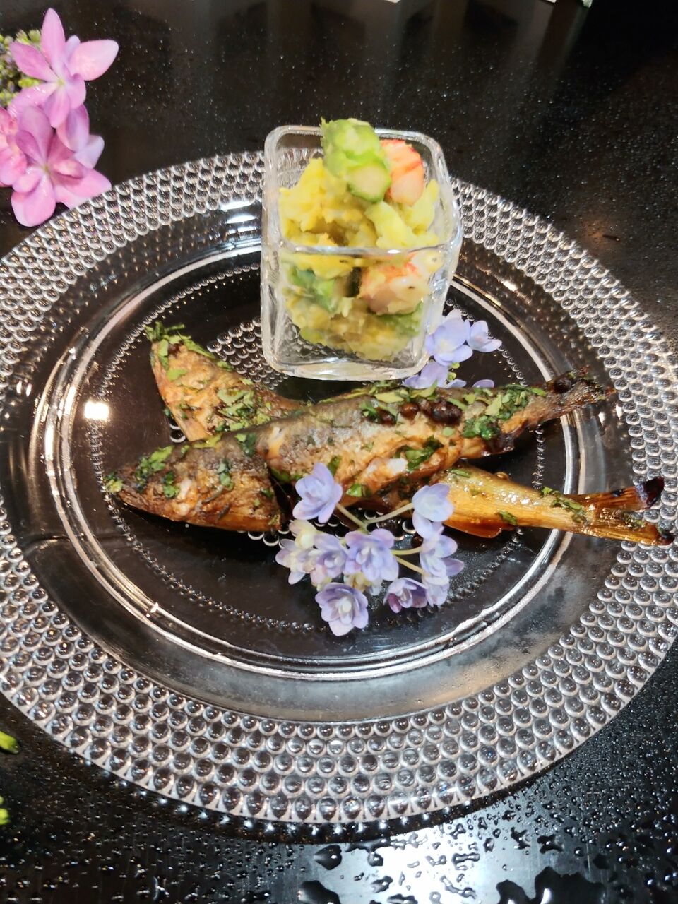橘月のお稽古 2021年05月24日 16:00 久しぶりに気持ちよく晴れた日曜日日本料理のお稽古に伺いました。先付は稚鮎の木の芽煮と才巻海老とアスパラの緑和えお椀鮎並と梅葛豆腐椀お造り 鰹のタタキ煮物青葉どきの煮びたし蒸し物アサリと鶏肉の蒸し物ご飯山梔子と実山椒ご飯菓子は最中紫陽花の花が彩を添えたお手本です。お越し頂きまして有難うございます。こちらに参加をしております。どうぞポチリと宜しくお願い致します。家庭料理ランキングワインランキング 「5月」カテゴリの最新記事 タグ :#日本料理 < 前の記事次の記事 > コメント コメントフォーム 名前 コメント 記事の評価 リセット リセット 顔 星 情報を記憶 コメントを投稿する
